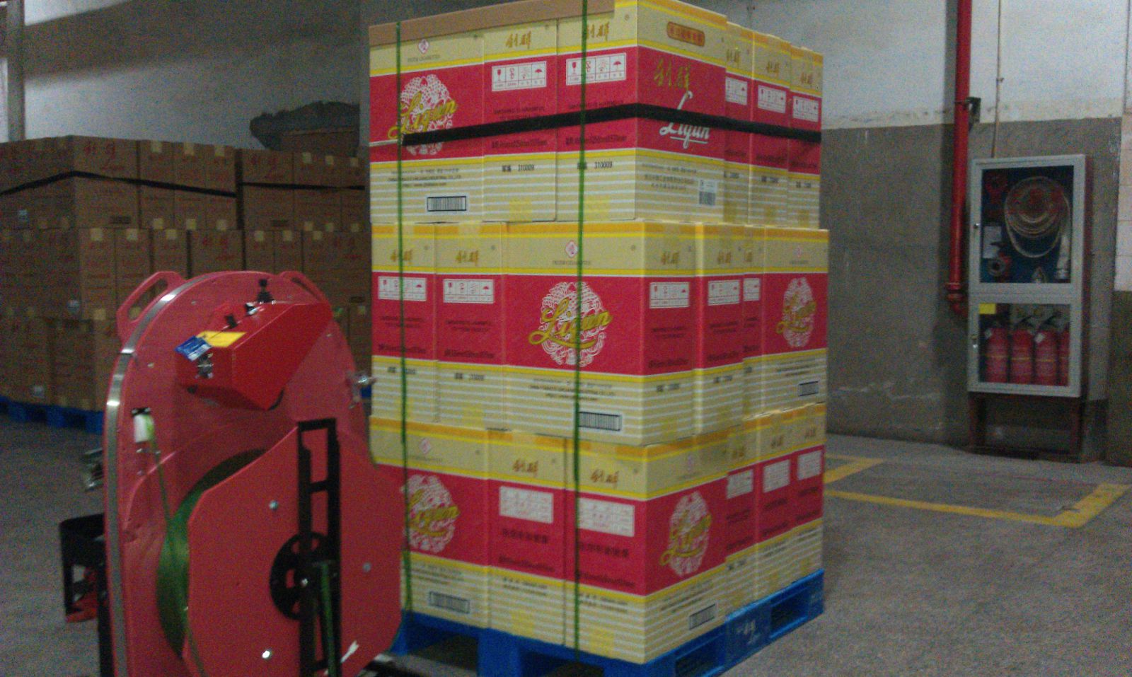 人工托盘打包是所有活动中劳动者需弯腰很频繁的:每次打带操作者需弯腰两次绕着托盘走...